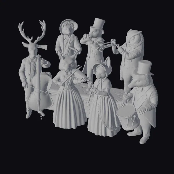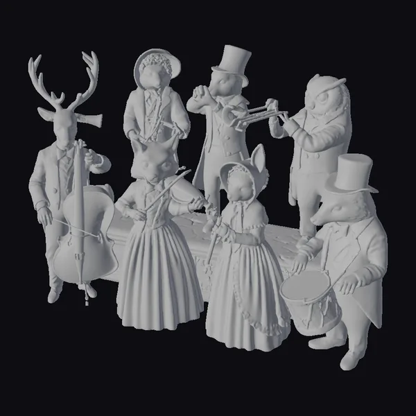 The Model “Victorian Animal Orchestra” is also available upon request in many other 3D formats, such as 3MF, BLEND, FBX, OBJ, USDZ and others, making it easy to integrate into your project.
