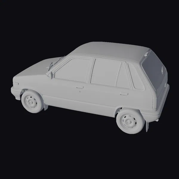 Detailed with precision, the model showcases a beige hatchback car with a boxy shape, characteristic of its vintage era. The vehicle’s smooth lines, simple wheel design, and classic window layout evoke a sense of nostalgia. The beige body, complemented by black trim and silver wheels, offers a clean and timeless look. Ideal for projects requiring a retro aesthetic, this model can be used in various applications such as animation, game development, architectural visualizations, and 3D printing.