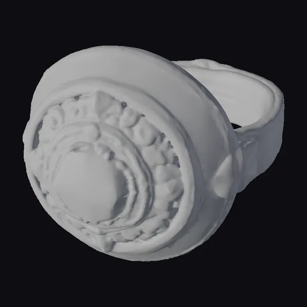 This highly detailed vintage gold ring boasts a substantial presence, with a wide, ornate band that showcases a beautiful gray stone surrounded by concentric circles of gold. The band itself is adorned with an intricate pattern that adds to the ring’s luxurious feel. The gold finish is meticulously rendered, with a subtle sheen that catches the light. The ring’s design is perfect for those who appreciate the craftsmanship of a bygone era. Ideal for use in games, 3D printing, VR/AR experiences, animation, and design projects, this model is sure to add a touch of sophistication and elegance.