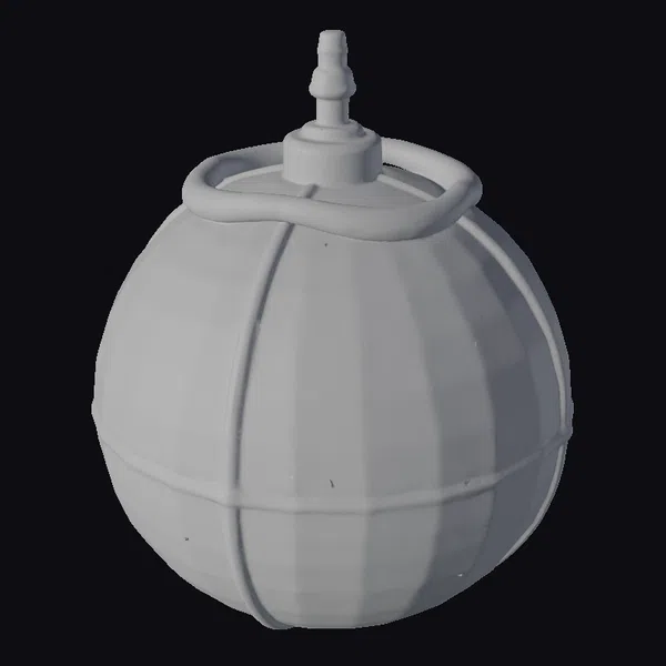 Perched atop a subtle base, this vintage metallic green bomb commands attention with its imposing presence. The model’s surface is a masterclass in texture, with deep grooves and raised seams that catch the light, suggesting a complex assembly process. A series of thin, metallic bands encircle the bomb, adding to its industrial aesthetic. The bomb’s green hue has faded over time, revealing patches of underlying metal and lending an air of authenticity. As light dances across its surface, the bomb seems to glow from within, its weathered patina imbuing it with a sense of history. Whether you’re a historian, a gamer, or simply someone who appreciates the intricacies of industrial design, this model is sure to captivate. Its level of detail makes it an excellent choice for use in games, 3D printing, VR/AR experiences, animation, or architectural design.