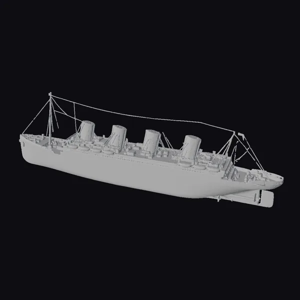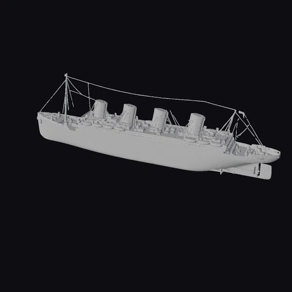 Perched on the horizon, this meticulously crafted ocean liner model exudes grandeur with its sleek black hull, adorned with a thin yellow stripe, and a bold red lower section. The white decks shine with a subtle sheen, while the four red smokestacksers stand tall, framed by delicate metal rigging. As the liner appears to glide across the waves, its impressive proportions and intricate textures evoke a bygone era of maritime luxury. Perfect for use in games, simulations, architectural visualizations, or 3D printing, this model is a masterpiece of nautical design.