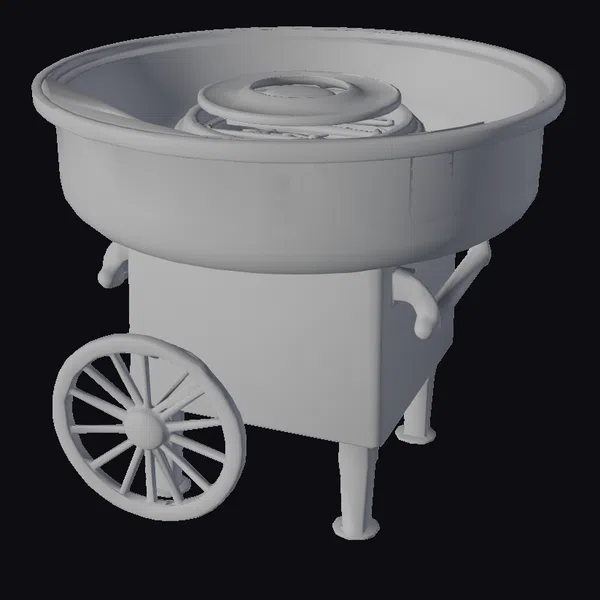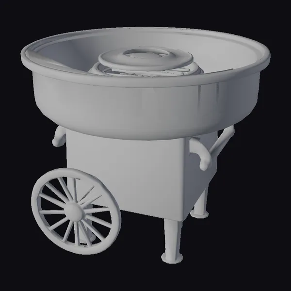 Perched on three sturdy legs, the Vintage Red Cotton Candy Maker boasts a large, round bowl and a prominent black spinning head, ready to spin sugar into fluffy treats. The model’s textured surface and raised lettering give it a tactile, retro feel. Whether you’re creating a vintage carnival scene, a whimsical outdoor setting, or a sweet-themed animation, this model is sure to delight. Its compact size and detailed design make it perfect for use in games, 3D printing, VR/AR experiences, animation, and design projects.