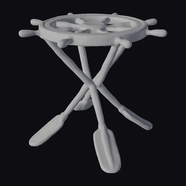 Crafted with meticulous attention to detail, this vintage ship wheel table stands out with its impressive pose, showcasing a ship’s wheel with a richly textured, weathered brass surface. The wheel’s spokes and hub are intricately designed, adding depth and realism. Supported by four wooden oars that cross in the middle, the base of the table is both functional and visually striking. The oars’ worn, wooden texture contrasts beautifully with the metal wheel, creating a captivating visual effect. The lighting highlights the metallic sheen of the wheel and the wooden grain of the oars, emphasizing the craftsmanship. Ideal for use in games, 3D printing, VR/AR experiences, animation, and design projects, this model brings a touch of maritime history and elegance. Its unique design and high-quality details make it a standout piece for any creative project.