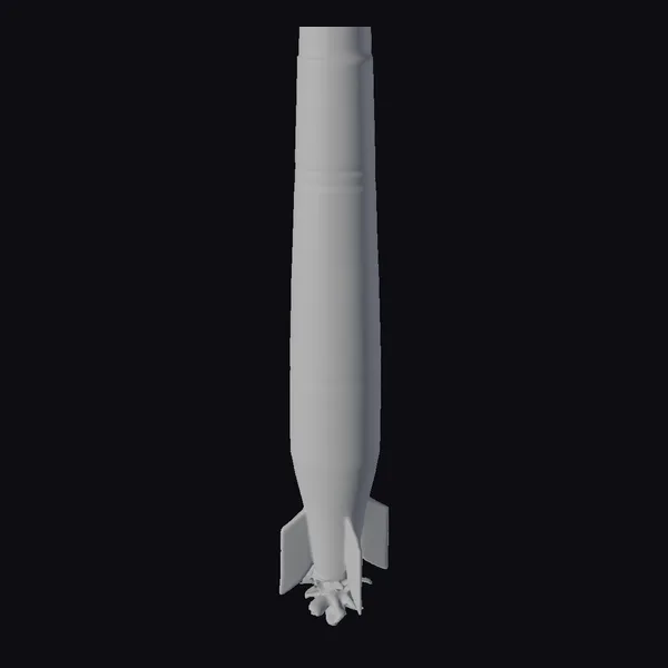 In a pose that commands attention, the vintage torpedo stands tall with its fins splayed out, as if ready to unleash its fury. The metallic surface, a blend of gray and green hues, showcases signs of aging with visible rust and wear. A dark cylindrical tip adds a touch of mystery, while the fins, though rusted, seem sturdy enough to withstand the pressures of the deep. This torpedo, with its intricate details and weathered appearance, would be a valuable addition to any 3D model collection, suitable for use in historical documentaries, video games, or architectural visualizations that require a touch of military history. Its realistic design and attention to detail make it an asset for projects aiming to depict scenes of war, naval battles, or underwater explorations.