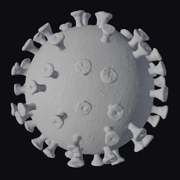 Floating dynamically against a crisp white backdrop, this meticulously crafted viral particle model reveals its intricate structure. The spherical body, a swirling mix of pink, purple, and blue, appears almost liquid-like in its iridescence. Protruding from its surface are numerous purple spikes, adding a sense of texture and depth. The model’s surface is dotted with small, darker spots, enhancing its realistic appearance. As a 3D model, it finds applications in scientific research, educational materials, and medical illustrations, offering a detailed glimpse into the microscopic world of viruses. Its high level of detail makes it suitable for use in games, animations, and virtual reality experiences, providing an engaging way to explore and understand viral structures.