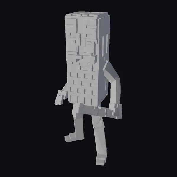 Crafted with meticulous attention to detail, this waffle humanoid boasts a sturdy, block-like structure with a delightful texture that mimics the crispy exterior of a freshly baked waffle. The facial features are skillfully designed, with expressive eyes and eyebrows that convey a sense of curiosity. The pose, with arms and legs splayed in a dynamic stance, suggests movement and energy. This charming model is perfect for projects that require a touch of whimsy, such as animations, games, or even decorative designs. Its uniqueness and charm make it an excellent addition to any creative endeavor.