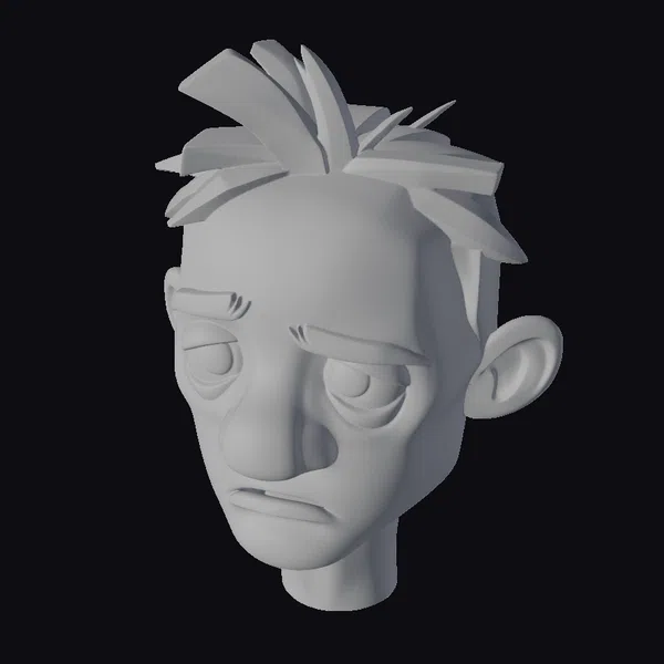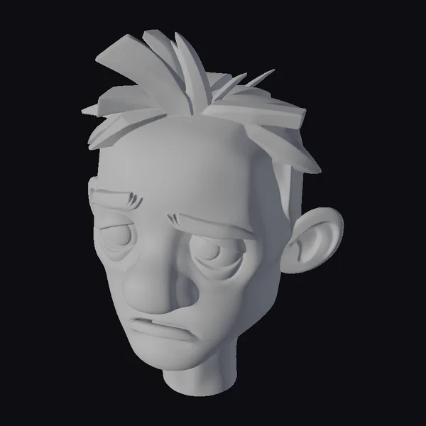 This detailed cartoon-style 3D model of a weary man’s head captures a moment of profound exhaustion. The character’s facial features are meticulously designed, with pinkish skin, sunken eyes exhibiting a reddish-brown hue, and dark eyebrows that accentuate his troubled expression. The hair, styled in a tousled manner, adds to the overall disheveled appearance. The model is well-suited for various applications, including animation projects, video game character design, and virtual reality experiences where realistic or stylized human characters are needed. Its emotive expression can bring depth to storytelling, making it an excellent choice for creators looking to convey complex emotions through their characters.