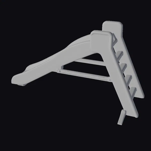 Perched at an inviting angle, the slide’s bright red surface glistens with a subtle sheen, while its yellow ladder-style climbing structure features ribbed rungs for easy grip. The paint appears worn and chipped, revealing glimpses of the underlying material and adding a layer of realism. The slide’s base is sturdy, with a slight lift at the end, suggesting movement and energy. Ideal for 3D environments, animations, or games focused on childhood nostalgia, outdoor play, or community spaces.