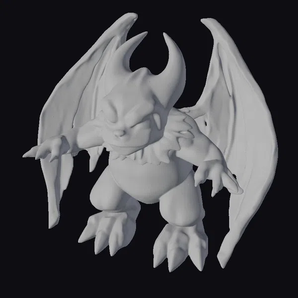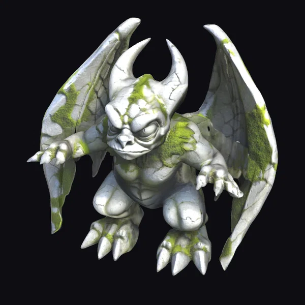 Detailed to perfection, this gargoyle model presents a crouched posture with wings spread wide, as if poised for flight or ready to pounce. The body is primarily composed of weathered grey stone, with patches of green moss adding a touch of life and age. The creature’s facial features are stylized yet menacing, with sharp horns, a pronounced snout, and piercing eyes. The wings, though broken, seem to flutter dynamically, caught in a moment of eternal motion. The model’s textures and lighting highlight the ruggedness of the stone and the softness of the moss, creating a compelling contrast. Ideal for use in games, 3D printing, VR/AR experiences, animation, and design projects, this gargoyle model brings a touch of the mystical and unknown.
