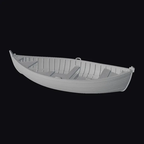 Positioned in a gentle, dynamic curve, this canoe’s worn wooden hull glistens with a subtle sheen, suggesting years of exposure to the elements. The interior, with its lighter-toned wooden slats, provides a warm contrast to the darker exterior. Three bench seats invite occupants to settle in for a peaceful journey. The canoe’s rustic charm and detailed texture make it perfect for use in games, 3D printing, VR/AR experiences, animation, and design projects. Its realistic appearance and weathered look add depth and character to any scene.