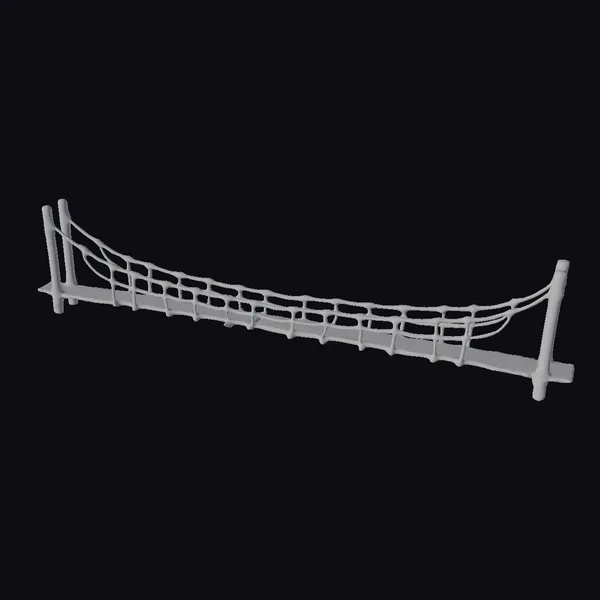 Crafted with meticulous attention to detail, this 3D model showcases a weathered wooden suspension bridge that seems to have been plucked straight from the great outdoors. The bridge’s wooden planks display a rich, textured grain, while the rope suspension system appears worn and frayed, as if it’s been battered by the elements. The model’s pose, with its gentle curve and sturdy posts, conveys a sense of stability and endurance. Ideal for use in landscape and architectural visualizations, games, or animations where a rustic, natural setting is desired.