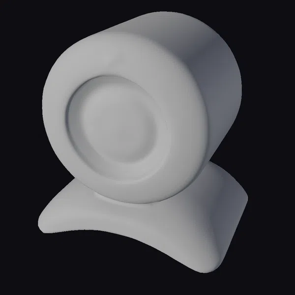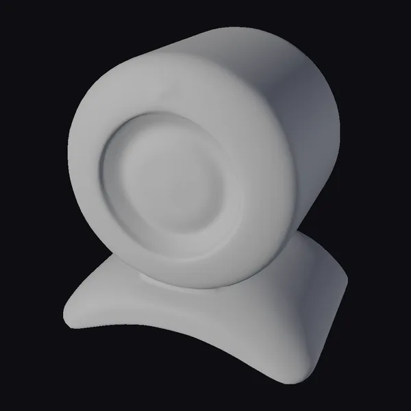 Positioned at a slight angle, the webcam showcases its rounded body and curved base, with a prominent lens that shimmers in shades of purple and blue. A thin white outline encircles the lens, adding a touch of sophistication. The small red indicator light above the lens suggests a sense of activity or recording. This detailed model is perfect for projects requiring a realistic tech gadget, such as animations, games, or architectural visualizations. Its modern design and sleek appearance make it an excellent addition to any 3D scene.