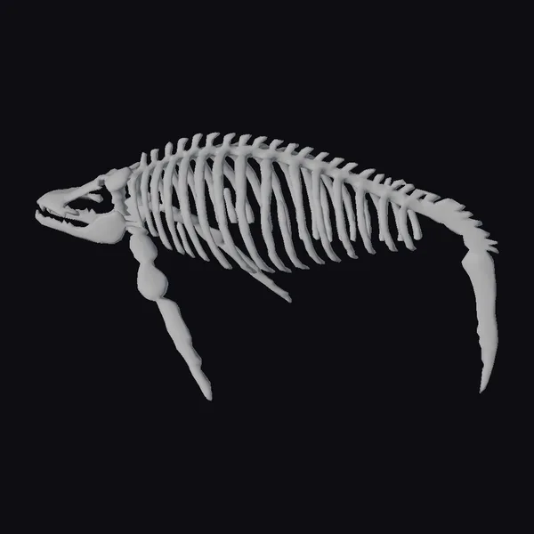Positioned in a dynamic pose, this 3D model of a whale’s thoracic cage offers a comprehensive view of the skeletal system that supports the massive body of a whale. The model features detailed bones, accurately proportioned to reflect the anatomy of a real whale. The texture is finely tuned to mimic the appearance of real bone, with subtle variations in color and shading that enhance its realism. The level of detail in this model makes it suitable for a range of applications, from educational presentations in marine biology to detailed animations and simulations. Its realistic appearance allows for a deeper understanding of whale anatomy, making it a valuable asset for researchers, educators, and 3D artists alike.