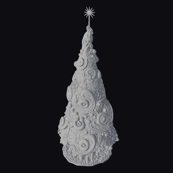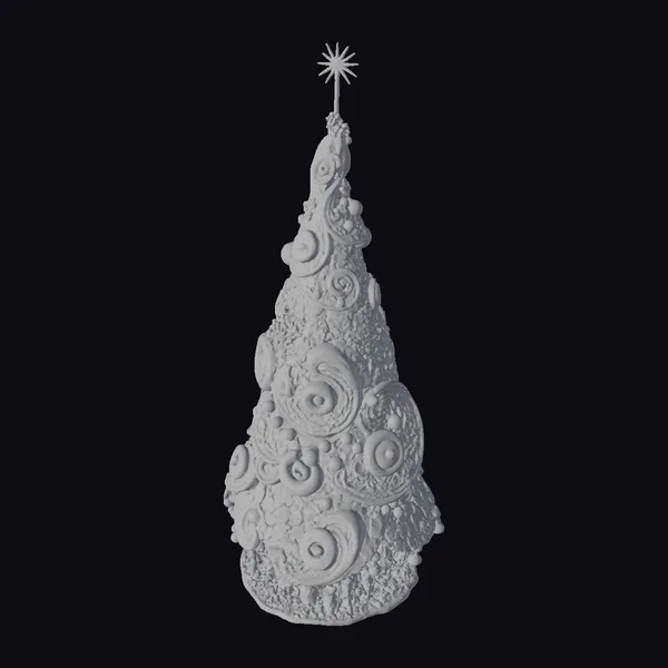 This stylized Christmas tree ornament features a teal base color adorned with swirling patterns of gold and cream. The tree’s shape is classic, tapering to a point where a golden star serves as the crowning glory. The surface is embellished with small gold balls and beads, adding to its festive appeal. The base of the tree is designed to resemble green grass with golden accents, providing a natural contrast to the ornate tree. The ornament’s design is detailed enough to catch the light, making it perfect for adding a touch of holiday magic to any scene. Ideal for use in games, 3D printing, VR/AR experiences, animation, and design projects.