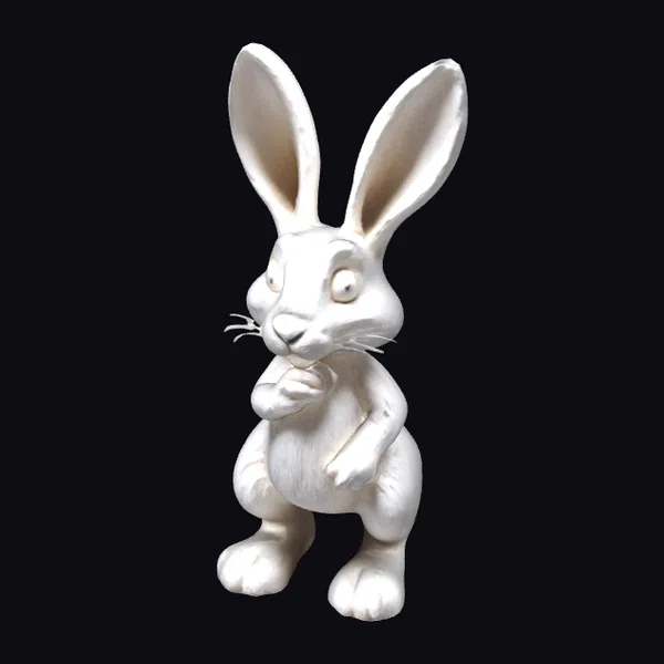 Standing proudly on its hind legs, this charming white rabbit figurine boasts an irresistible charm. Its body is rendered in exquisite detail, with a textured, clay-like finish that gives it a lifelike appearance. The long ears are perked up, as if listening intently, while its whiskers add a touch of realism. The figurine’s pose, with one paw gently touching its chin, conveys a sense of contemplation. This model is perfect for use in games, 3D printing, VR/AR experiences, animation, and design projects, offering a versatile and engaging visual element. Its high level of detail and realistic features make it an excellent choice for projects requiring a lifelike rabbit character.