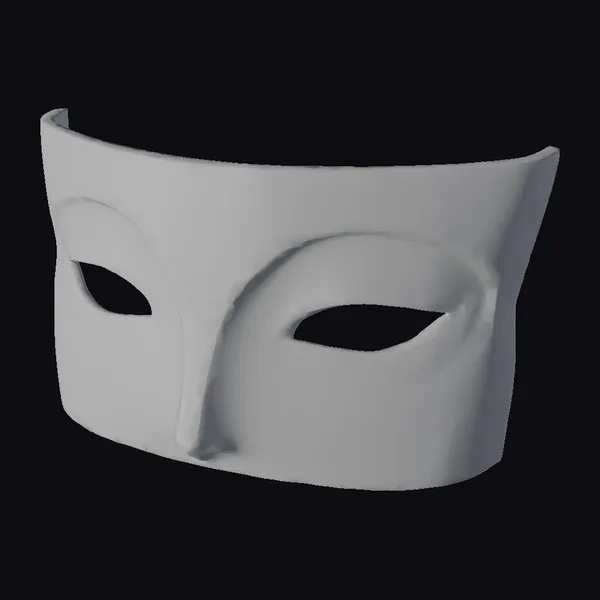 Positioned in a gentle, enigmatic smile, the mask’s eyes seem to hold a thousand secrets. The white surface is punctuated by bold black and red eye details, while the curved top features a series of beige polka dots that add a touch of whimsy. Crafted with precision, the mask’s smooth, flowing lines and sharp edges create a striking visual contrast. Ideal for use in theatrical productions, costume design, or as a decorative piece, this stylized mask is sure to captivate. Its 3D model can be used in various applications, including games, animation, and virtual reality experiences.