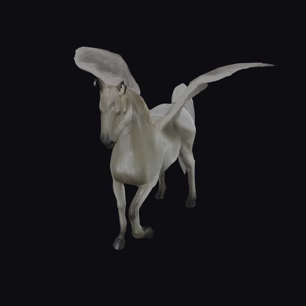 Gazing upon this winged horse, you’re immediately struck by its dynamic pose and the intricate details that bring it to life. The model boasts a realistic style, with a shiny white coat that seems to glow and dark hooves that add a touch of earthiness. Its wings, spread wide as if in mid-flight, showcase delicate feathers and a strong skeletal structure. The horse’s head is held high, with a serene expression that captures its mythical beauty. This model is perfect for projects that require a touch of fantasy and magic, such as animations, games, or architectural visualizations. Its high level of detail and realistic appearance make it an excellent choice for designers and artists looking to add a mythical touch to their work.