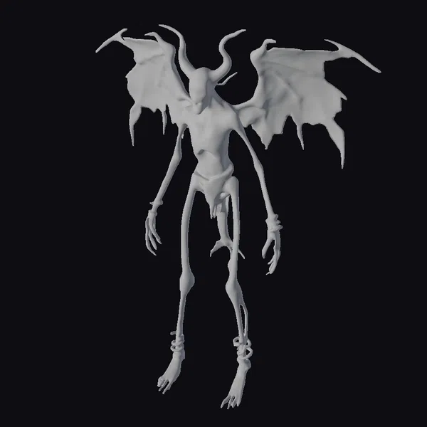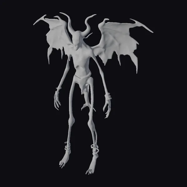 Standing with an unsettling posture, this winged humanoid exudes an aura of dread. Its body, characterized by a tall and slender build, seems to fade into the background with a translucent appearance. The wings, spread wide, accentuate its otherworldly presence. Serpent-like eyes seem to bore into the soul, while the overall dark coloration and twisted features evoke a sense of horror. This model is perfect for projects requiring a creature that embodies fear and the supernatural, suitable for use in games, 3D printing, VR/AR experiences, animations, and designs that require a touch of the macabre.