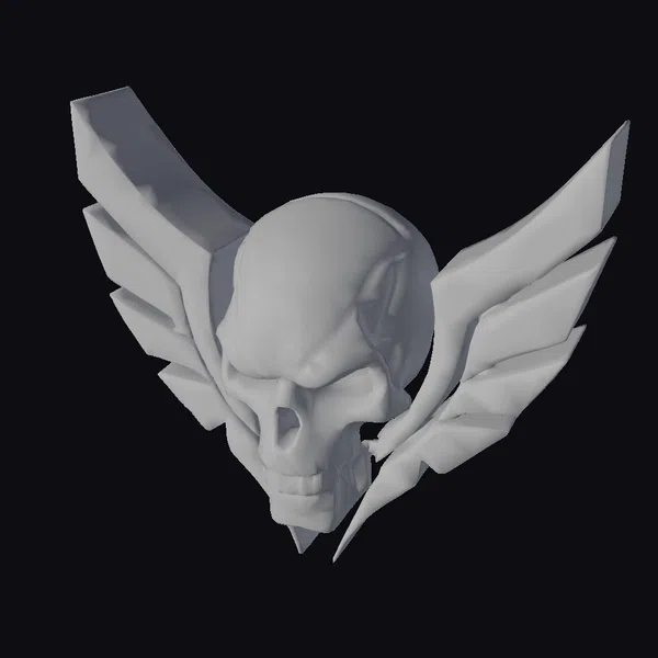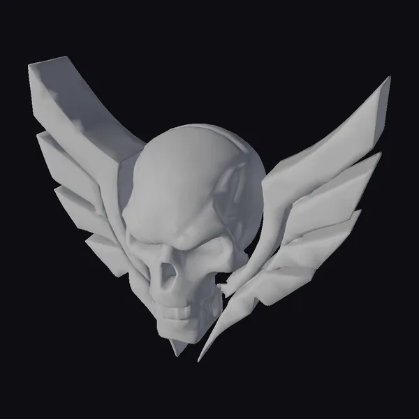 Perched atop a skeletal visage, two imposing wings stretch outwards, their metallic sheen weathered to a dark, battle-worn finish. The skull’s empty sockets blaze with an eerie red glow, casting an ominous light on the surrounding environment. Crafted with meticulous attention to detail, this winged skull emblem exudes a sense of dark energy, perfect for use in games, animations, or 3D prints. Its bold design and menacing presence make it an ideal choice for projects that demand a touch of the macabre.