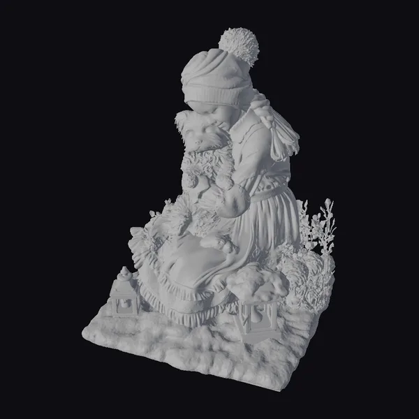 The Model “Winter Girl with Dog” is also available upon request in many other 3D formats, such as 3MF, BLEND, FBX, OBJ, USDZ and others, making it easy to integrate into your project.
