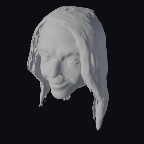 This meticulously crafted witch head mask presents a formidable visage, complete with sunken, yellow eyes that seem to pierce through the darkness. Her skin is a canvas of deep wrinkles, painted with hues of orange and gray that suggest a life of mystery and malevolence. The long, gray hair drapes around her face, adding to the mystique. The model’s intricate details make it an excellent choice for projects requiring a realistic, horror-inspired character, suitable for use in games, 3D printing, VR/AR experiences, animation, and design applications. The quality of the model is evident in its sharp features and lifelike texture, making it a compelling addition to any creative project.