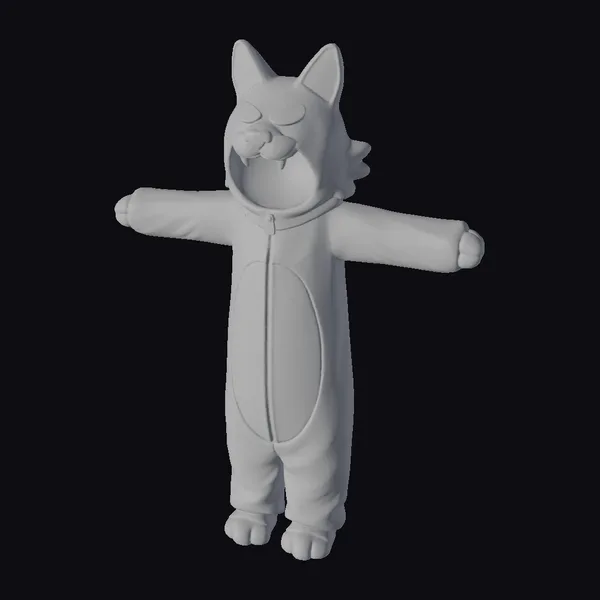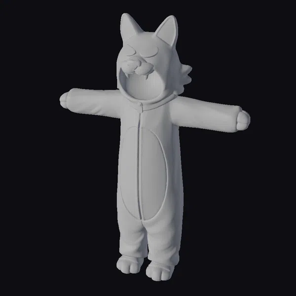 Standing with arms outstretched, this wolf onesie display model showcases intricate details like fuzzy texture, sharp teeth, and an open mouth with a black interior. The onesie’s shiny surface and smooth lines give it a cartoonish feel. With its vibrant yellow eyes and soft gray fur, this onesie is sure to delight kids and adults alike. Ideal for 3D animation, game development, or printing, this model is ready to bring joy to your projects. Imagine using it in a children’s game, an animated series, or even a funny advertisement.