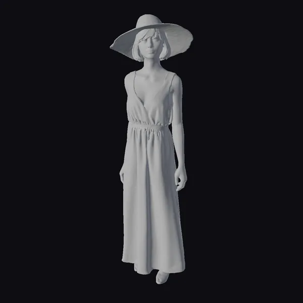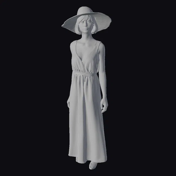 The Model “Woman in Coral Dress” is also available upon request in many other 3D formats, such as 3MF, BLEND, FBX, OBJ, USDZ and others, making it easy to integrate into your project.
