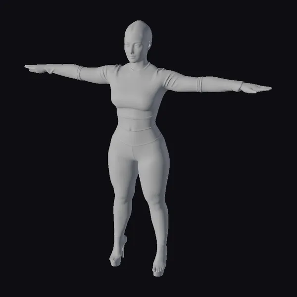 In a pose that speaks of balance and poise, the woman stands with her feet shoulder-width apart, arms extended to the sides, and palms facing downwards. Her dark hair is neatly pulled back, framing her face with simplicity. The outfit, consisting of mauve leggings and a light grey cropped top, highlights her physique while maintaining a casual, approachable vibe. The clear heels she wears add a touch of glamour, elevating her stance from casual to stylish. This 3D model, with its realistic depiction and attention to detail, is ideal for use in fitness and fashion projects, 3D animations, virtual reality experiences, and architectural visualizations where a modern human element is required. The model’s serene expression and relaxed posture make it versatile for a wide range of applications, from advertising and marketing to game development and educational content.