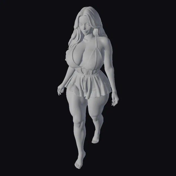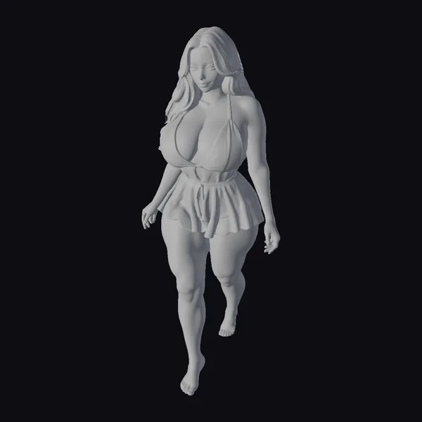 Gaze upon the captivating beauty of this 3D model, a woman dressed in a tantalizing purple lingerie set that showcases her curves. Her long, dark hair flows behind her, framing her face and complementing her bare feet as she takes a step forward. The model’s skin has a natural, realistic texture, and her facial features are delicately defined. The lingerie itself is a marvel of detail, with sheer fabrics and a design that accentuates her figure. This model is perfect for projects requiring a touch of elegance and allure, whether it’s for animation, game development, virtual reality experiences, or architectural visualization. Its realistic style ensures it will blend seamlessly into any environment, from fantasy realms to modern-day settings.