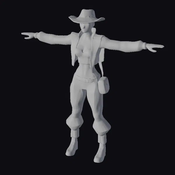 In a pose that exudes confidence and freedom, this woman stands tall with her arms outstretched, showcasing a futuristic outfit that’s equal parts fashion and function. Her white hat, jacket, and pants are rendered in exquisite detail, with textures that suggest a high-tech material that’s both durable and stylish. The gray backpack and pouch add a utilitarian touch, while the boots look like they’re designed for a life on the go. With its sleek lines, vibrant colors, and meticulous attention to detail, this 3D model is perfect for use in games, print materials, VR/AR experiences, animation, and design projects. Whether you’re creating a futuristic cityscape or a sci-fi adventure, this model is sure to be a valuable asset.