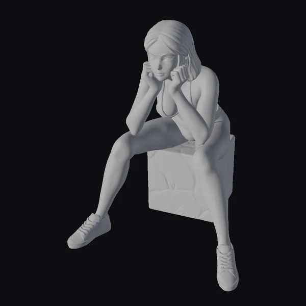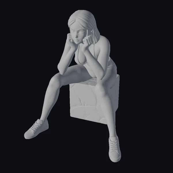 Delve into the intricate details of this captivating 3D model, where the woman’s pose, textures, and lighting converge to create a visually stunning piece. Her body language, with hands gently supporting her chin, speaks volumes of a tranquil moment captured in time. The stylized approach gives her an undeniably youthful and vibrant appearance, making her a versatile asset for projects requiring a touch of casual chic. The model is meticulously crafted with high-quality textures and realistic proportions, ensuring a seamless integration into various applications, from game development and animation to architectural visualization and design. The contrast between the bright yellow bikini and the subtle gray stone block she sits on adds a pop of color, making the model a compelling choice for projects that demand a blend of style and narrative depth.