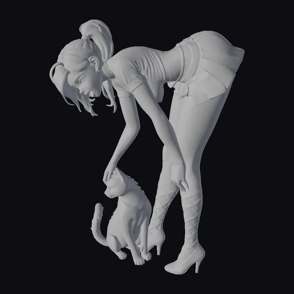 The Model “Woman Petting Orange Cat” is also available upon request in many other 3D formats, such as 3MF, BLEND, FBX, OBJ, USDZ and others, making it easy to integrate into your project.