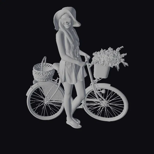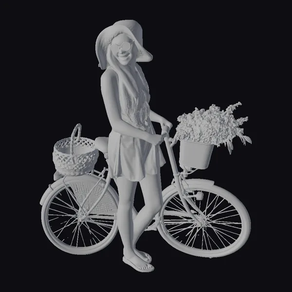 The Model “Woman with Bicycle Flowers” is also available upon request in many other 3D formats, such as 3MF, BLEND, FBX, OBJ, USDZ and others, making it easy to integrate into your project.