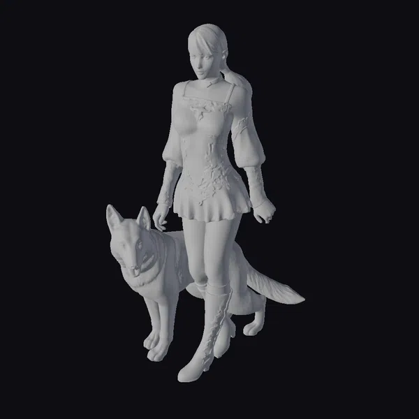 The Model “Woman with Dog Companion” is also available upon request in many other 3D formats, such as 3MF, BLEND, FBX, OBJ, USDZ and others, making it easy to integrate into your project.