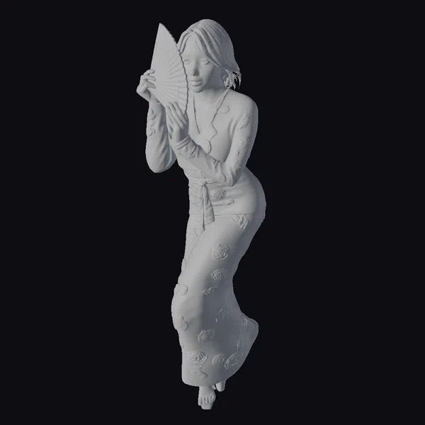 The Model “Woman with Fan” is also available upon request in many other 3D formats, such as 3MF, BLEND, FBX, OBJ, USDZ and others, making it easy to integrate into your project.