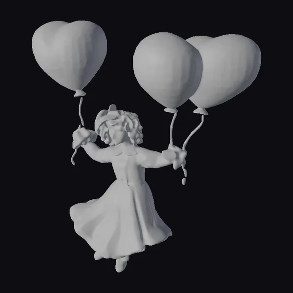 The Model “Woman with Heart Balloons” is also available upon request in many other 3D formats, such as 3MF, BLEND, FBX, OBJ, USDZ and others, making it easy to integrate into your project.
