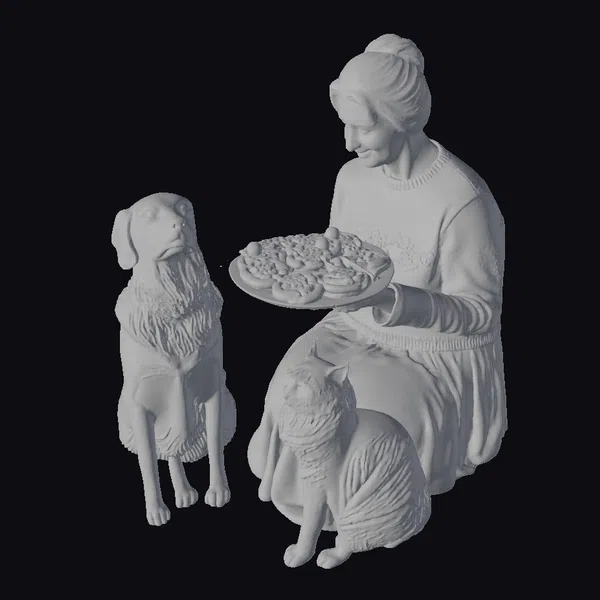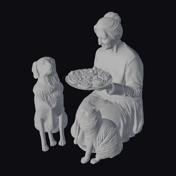 The Model “Woman with Holiday Treats” is also available upon request in many other 3D formats, such as 3MF, BLEND, FBX, OBJ, USDZ and others, making it easy to integrate into your project.