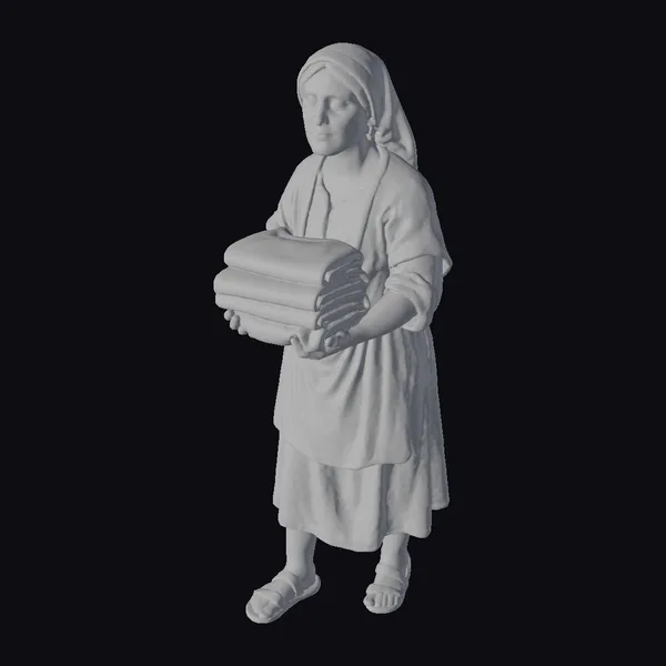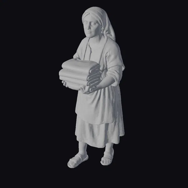 The Model “Woman with Laundry Stack” is also available upon request in many other 3D formats, such as 3MF, BLEND, FBX, OBJ, USDZ and others, making it easy to integrate into your project.