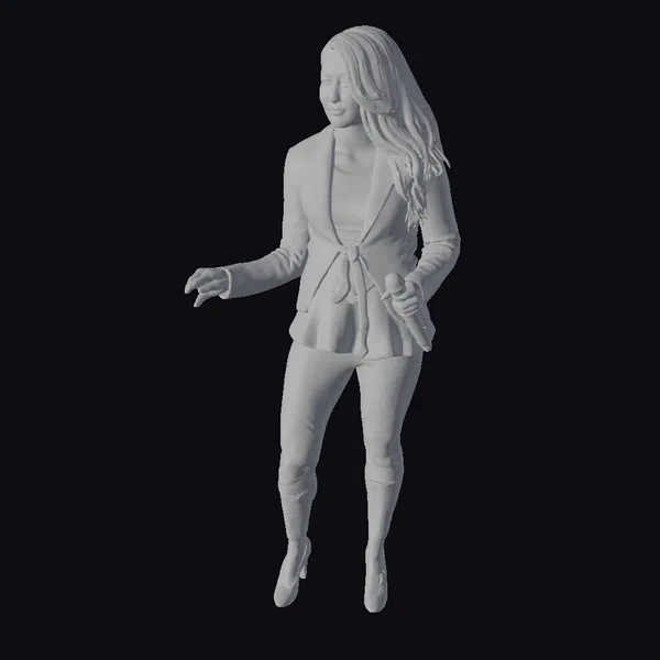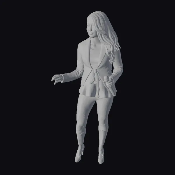 The Model “Woman with Microphone” is also available upon request in many other 3D formats, such as 3MF, BLEND, FBX, OBJ, USDZ and others, making it easy to integrate into your project.
