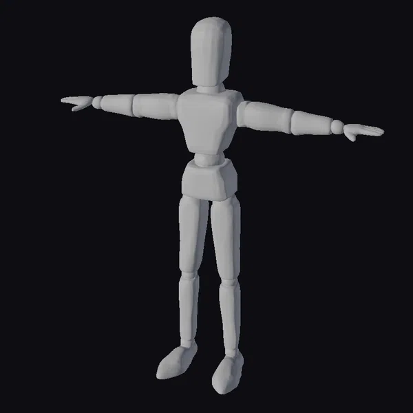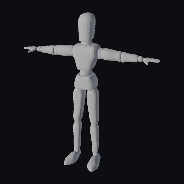 Positioned in a dynamic stance with arms extended to the sides, this wooden mannequin showcases a highly detailed and realistic design. Its surface texture mimics the smooth finish of wood, while the joints allow for a wide range of poses, making it an ideal model for artistic studies, particularly in anatomy and figure drawing. The model’s proportions are accurate, ensuring that artists can rely on it for precise studies. Beyond its utility in art and design, it also serves as an educational tool for understanding human anatomy. Its presence in a 3D environment allows for versatile applications, including games, animation, and virtual reality projects.