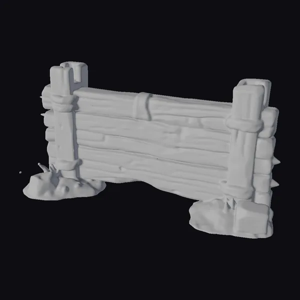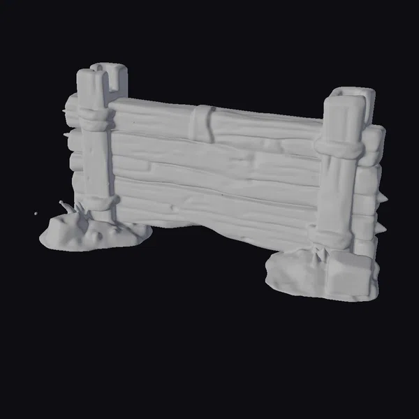 Crafted with meticulous attention to detail, this wooden barricade model showcases a sturdy defense mechanism, likely hastily constructed to fend off a zombie horde. The wooden planks, stained with splatters of blood, tell a story of intense battles. Metal bands encircle the structure, adding to its fortified appearance. Positioned on rocky bases, the barricade seems to anchor itself firmly to the ground. Its realistic texture and the play of light on its surface invite the viewer into a post-apocalyptic world. Ideal for game developers, animators, and designers looking to add authenticity to their zombie-infested environments.