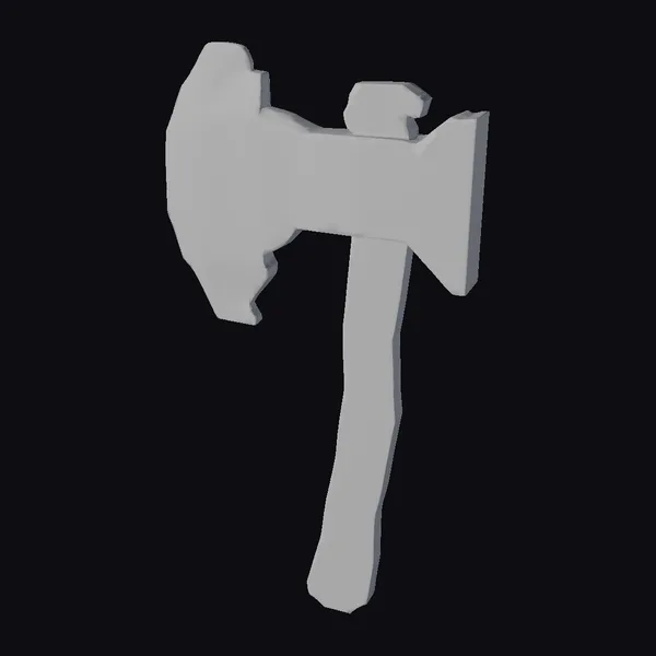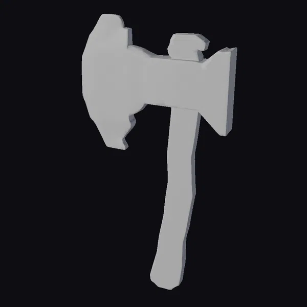 Positioned dynamically, the wooden battle axe boasts a robust handle and a broad, curved head, both showcasing a beautiful wood grain texture. The stylized model features a subtle sheen, hinting at a well-oiled finish. Soft lighting accentuates the axe’s rugged charm, making it perfect for use in games, animations, or 3D prints. Designers and artists can integrate this detailed model into their projects, from medieval landscapes to fantasy realms, adding a touch of authenticity and heroism.