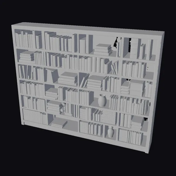 Perched against a plain backdrop, this stunning wooden bookshelf takes center stage, showcasing its impressive collection of books and decorative items. The bookshelf’s light wood tone provides a warm and inviting base for the rainbow of books that fill its shelves, ranging from neatly stacked volumes to casually placed tomes. A few decorative items, such as small vases, add a touch of elegance to the overall design. The intricate details of the bookshelf, including the texture of the wood and the subtle shadowing, create a highly realistic appearance. This 3D model is perfect for use in interior design projects, architectural visualizations, or as a unique prop in game development, 3D printing, or animation.