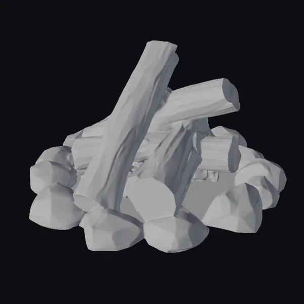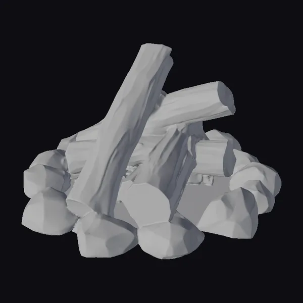 Imagine sitting by a crackling campfire on a chilly night, surrounded by the serene sounds of nature. This meticulously crafted wooden campfire setup features a pile of sturdy logs, carefully positioned to evoke a sense of warmth and coziness. The logs boast a realistic wood texture, complete with visible grain patterns and a warm, golden brown color. The surrounding rocks add a natural touch, with each one uniquely shaped and textured to create a sense of authenticity. Perfect for games, animations, or 3D environments, this model is sure to bring a sense of comfort and tranquility to any scene.