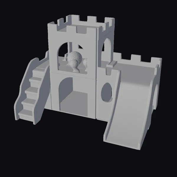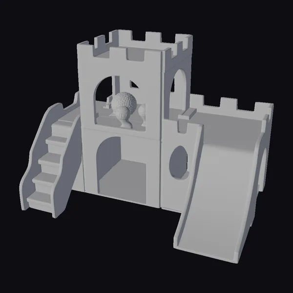 Perched atop a sturdy base, the castle’s majestic structure boasts two towers, each adorned with battlements and archways that invite exploration. A winding staircase connects the levels, while a slide offers a thrilling way to descend. The playset’s wooden texture and earthy tones evoke a sense of nostalgia and warmth. Ideal for kids’ playrooms, game environments, or animation projects, this 3D model brings a touch of fantasy and adventure to any setting.
