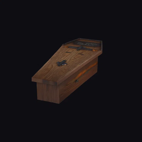 Crafted with meticulous attention to detail, this wooden coffin model boasts a rich, dark wood grain that appears worn and aged. Two metal crosses are strategically placed on the lid, adding a sense of solemnity and mystery. The coffin’s rectangular shape and sloping lid are classic, while the subtle play of light on its surface hints at a deeper story. Ideal for use in games, 3D printing, VR/AR experiences, animation, and design projects, this model is sure to evoke a sense of eeriness and intrigue. Its realistic texture and details make it a compelling addition to any project.