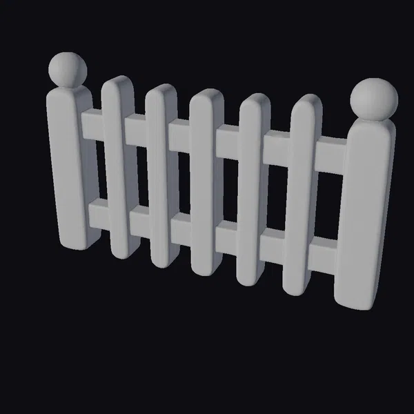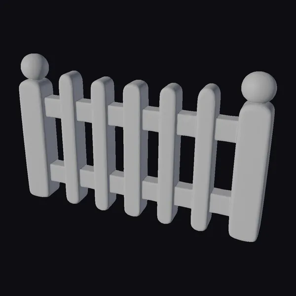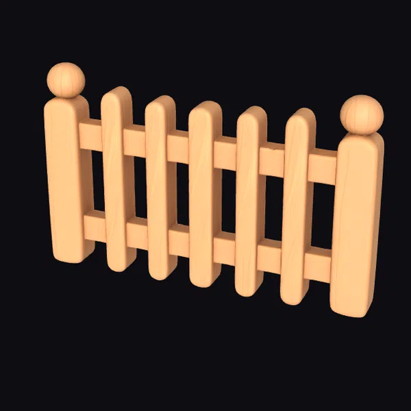 Positioned at a gentle angle, the fence section reveals its detailed texture and structure, showcasing the rounded tops of the posts and the horizontal slats that connect them. The light wood tone gives the fence a warm, welcoming appearance, perfect for garden or yard settings. The stylized approach to the design enhances its visual appeal, making it suitable for various applications, from game environments and animations to architectural visualizations and 3D printed decorative items. The model’s simplicity and charm can add a rustic or countryside feel to any project.