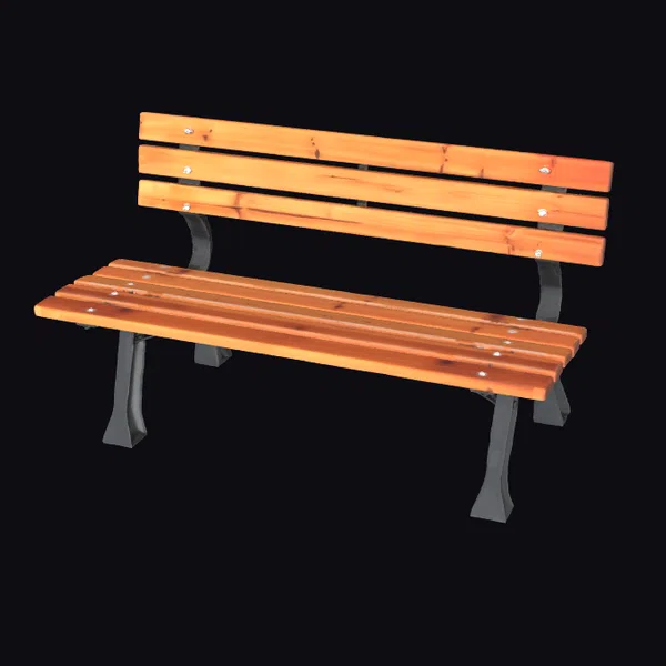 Perched invitingly against a bright white backdrop, the wooden park bench showcases its impressive details. The three horizontal backrest slats and four seat slats are meticulously crafted with visible bolts, adding an industrial touch to its natural beauty. The curved metal legs provide sturdy support, while the wood grain texture lends an organic feel. Ideal for architects, designers, and artists seeking a realistic 3D model for their projects, this bench can be used in various applications, such as game development, architectural visualizations, or 3D printing. Its classic design ensures seamless integration into outdoor settings, from parks and gardens to cityscapes and more.