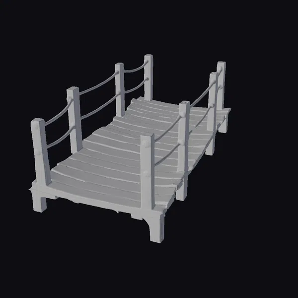Perched at a gentle angle, the wooden plank bridge presents itself with a sturdy demeanor, its individual planks meticulously detailed to showcase the natural texture of the wood. The bridge’s temporary nature is evident in its simple yet robust construction, with each plank and post carefully positioned to ensure stability. The rope railing, wrapped around wooden posts and secured with metal bolts, adds a layer of safety and aesthetic appeal. This 3D model is perfect for projects requiring a realistic, detailed bridge structure, such as game environments, architectural visualizations, or film settings. Its high level of detail makes it suitable for close-up shots, while its realistic appearance ensures seamless integration into various scenes.