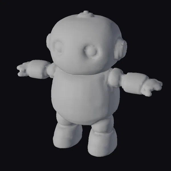 This delightful wooden robot stands with its arms outstretched, as if ready to embrace its surroundings. Its head features a small, black knob on top and rounded ears on either side, adding to its endearing appearance. The robot’s body is adorned with small, circular details and a curved line on its chest, giving it a sense of depth and visual interest. The wooden texture is beautifully rendered, with subtle brown accents on the joints and limbs that add a sense of realism. The robot’s big, shiny eyes and gentle smile make it an irresistible character. This model is perfect for use in games, animations, or as a 3D print, bringing a touch of whimsy and charm to any project.